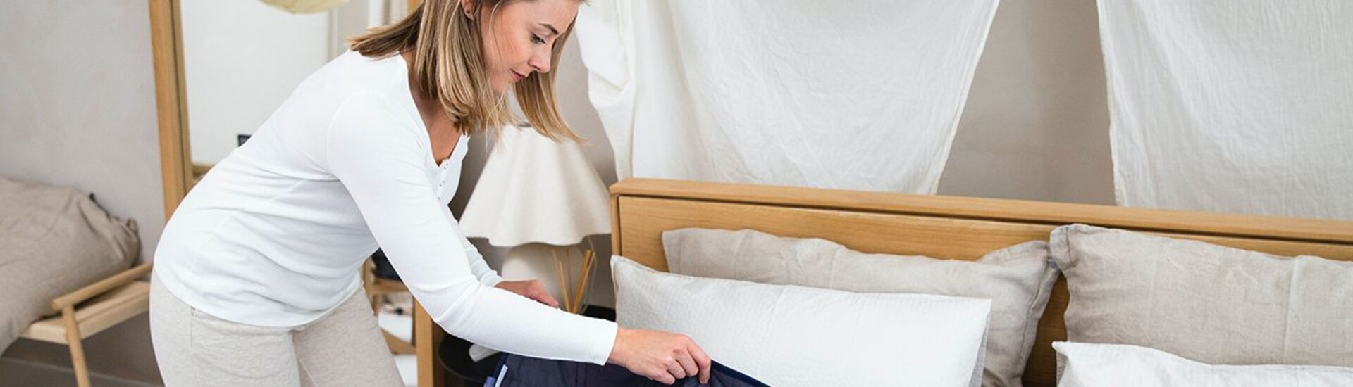 Entretenir sa literie est essentiel. Que ce soit pour préserver la bonne durée de vie du matelas, pour profiter d’un confort de qualité, ou encore conserver une hygiène optimale, prendre soin de son matelas et tous ses accessoires prend alors tout son sens. Il faut savoir que durant la nuit, nous transpirons et perdons de l’eau : jusqu’à environ 1 litre d’eau par personne et par nuit. Toute cette eau est réceptionnée par notre literie, principalement le matelas et l’oreiller. Ainsi, le lavage régulier de votre linge de lit est indispensable : il permet de limiter la prolifération des microbes (qui se développent plus facilement en milieu humide). Ce conseil est d’autant plus valable pour les personnes souffrant d’allergies aux acariens qui en seront plus sensibles avec un mauvais entretien du linge de lit. Enfin, en lavant votre linge de lit, vous profitez d’un meilleur confort. Les draps frais et propres contribuent à un sommeil plus paisible et de qualité.